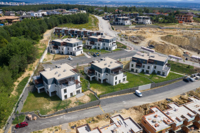 Construction of residential area - three-storey apartment buildings and terraced houses including road infrastructure and underground engineering networks