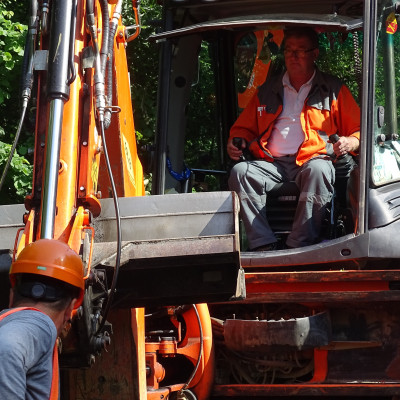 Pokládka drenážnej úpravy ako podkladu pre povrch bežeckej dráhy športoviska základnej školy v Trnave.