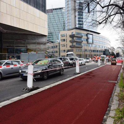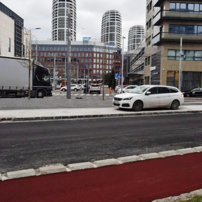 Cyklochodník Ružinovská, Bratislava - pokládka farebného asfaltu
