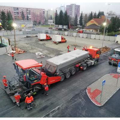 Asfaltovanie plôch a príjazdových ciest do Obchodného domu Kaufland vo Svidníku.