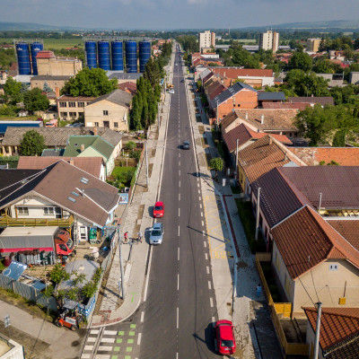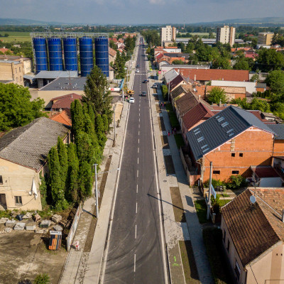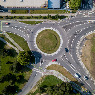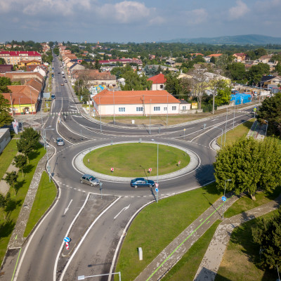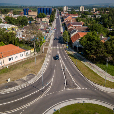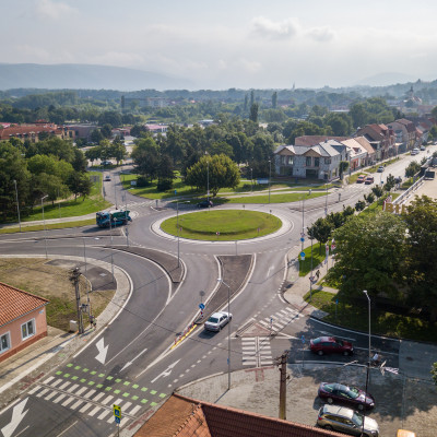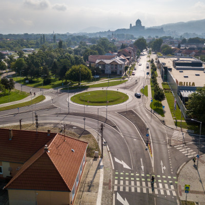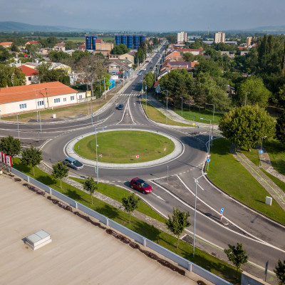 Prestavba priesečnej križovatky na okružnú, rekonštrukcia cesty, vybudovanie cyklochodníkov
