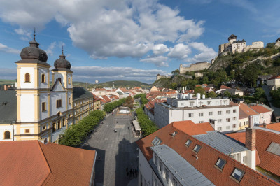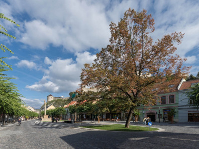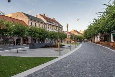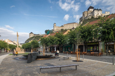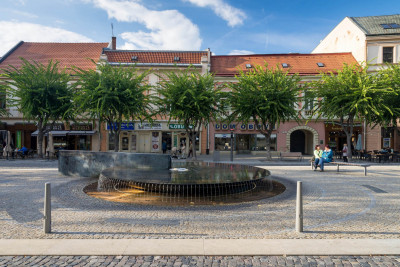 Spoločnosť CESTY NITRA, a. s. realizovala na tejto stavbe kompletnú rekonštrukciu – povrch námestia (spätné použitie historickej dlažby), sadové úpravy, verejné osvetlenie spĺňajúce požiadavky SMART city (osvetlenie, ozvučenie, wifi, kamery) a námestie sa doplnilo o mobiliár, pódium, fontánu a bronzový model mesta.