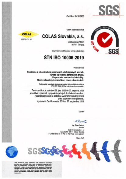 Etický kódex vyjadruje základné hodnoty, dodržiavanie ktorých skupina COLAS presadzuje pri plnení svojich záväzkov voči klientom, zamestnancom, akcionárom a partnerom zo súkromného a verejného sektora, ako i občianskej spoločnosti.